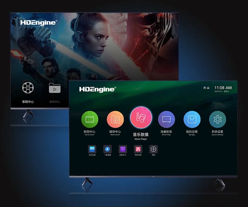 海缔力支持海量网络影视内容支持,观影、追剧、TV、新闻、游戏、音乐等应有尽有;强悍处理器性能及超大空间内存,保障对各类APP应用的流畅支持。除此之外,海缔力8K旗舰还支持更多更高品质的专业影库选用,支持下载和专业在线,比传统在线点播品质更高,音画更好。