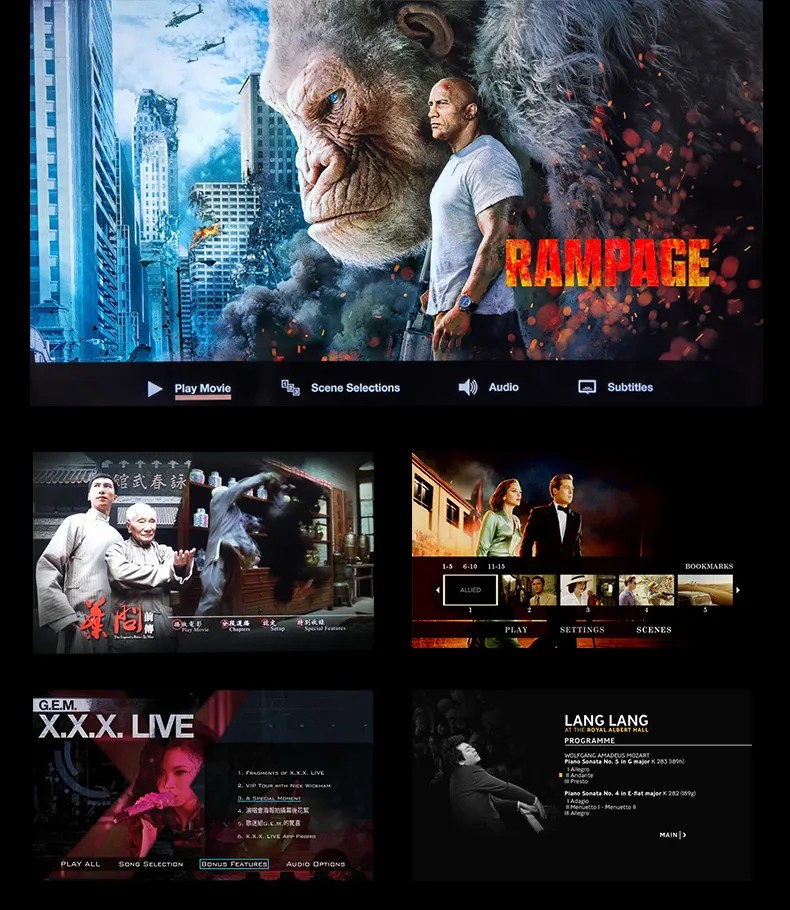 海缔力8K旗舰优化了视频播放引擎,支持更多特殊文件播放。对“复杂MPLS结构多结局蓝光原盘”俗称“肉酱盘”,也可以支持无缝衔接播放,告别播放卡顿问题;并支持BD和UHD蓝光菜单导航播放,原汁原味的观影体验,享有更多影片之外的乐趣。