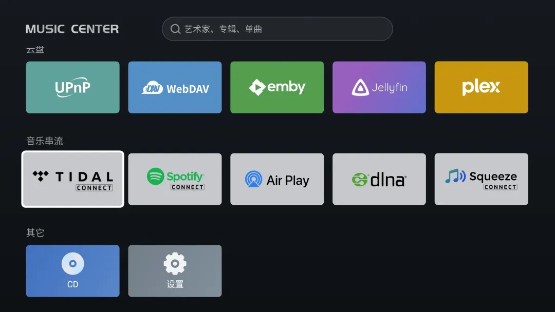 海缔力8K旗舰不仅是一台免费看片下载安装播放机,还是一台数播,它可作为一台网络流媒体音乐播放器来使用,支持Tidal Connect串流及DLNA推送播放。即:通过局域网内移动设备上安装的音乐流媒体应用在线播放海量高质量音乐无线串流或推送至本机进行播放,以更为便捷的方式欣赏到高质量的海量网络音乐服务,还能在本机以更出色的音质进行音乐的无损回放。