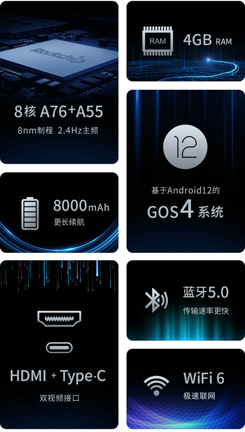 | GPU/NPU | Mail-G610 MP4四核,6Tops |