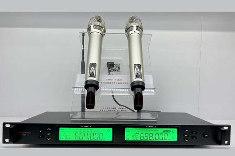 SK20-43 一拖二真分集手持 KCHYRS (卡尔斯)1、 全新的音频电路构架,高音细腻,中低频强劲,特别是在声音的细节上具有 完美的表现力。超强的动态跟踪能力使得远/近距离拾音收放自如。2、 全新概念的数字导频技术,彻底解决相互串频现
