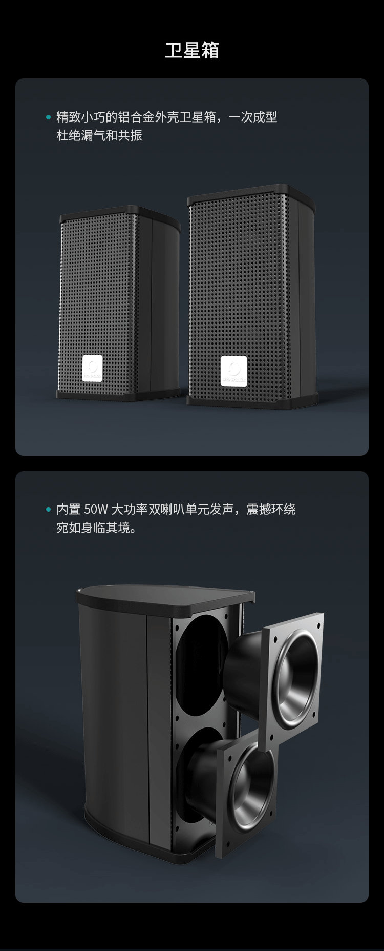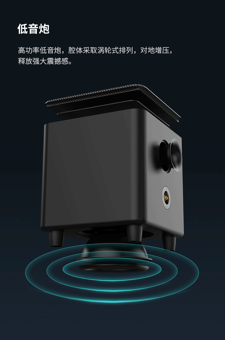 一次成型,杜绝漏气和共振。内置双喇叭单元发声,细腻温润,真实饱满。高功率低音炮